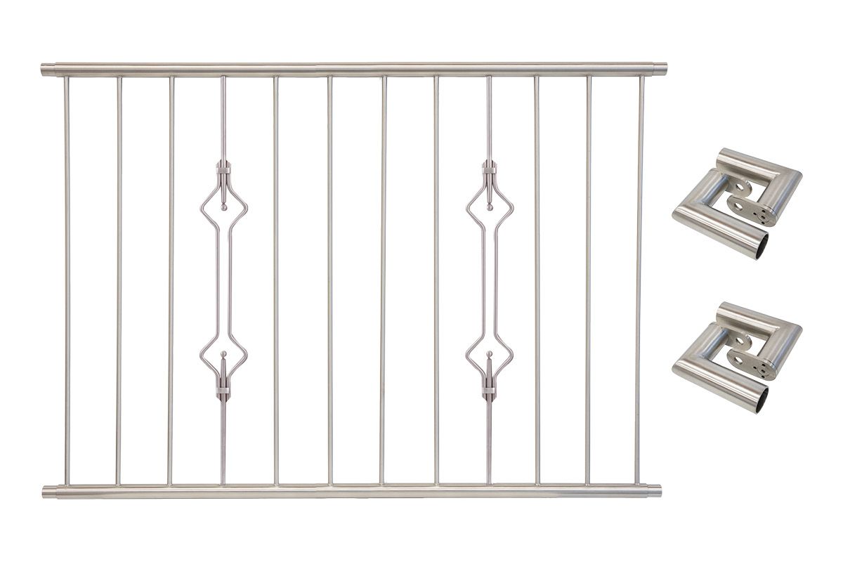 Die Fenstergitter werden inklusive 4 Anschluss/Flansch-Stücke aus Edelstahl geliefert.