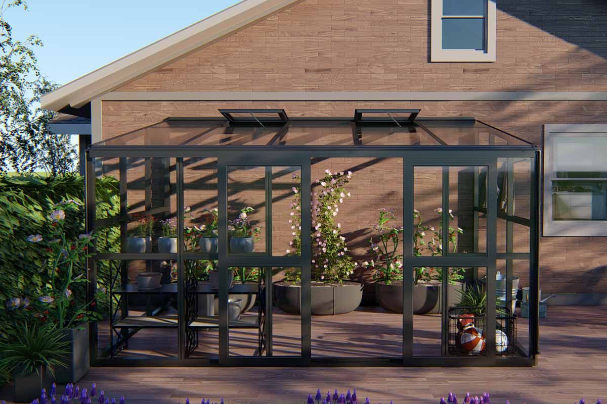 So schön könnte Ihre freie Hauswand auch bald aussehen! Denn bei unserem Gewächshaus Thymian handelt es sich um ein Anbaugewächshaus, dass Ihre Hauswand als sichere Rückwand benötigt - optimal für z.b. kleinere Gärten. Die Alurahmen sind äußerst stabil und bieten den Glasflächen so einen sicheren Rahmen. Im Dach befinden sich hochwertige Hohlkammerplatten, die Ihre Pflanzen vor zu intensiver Sonneneinstrahlung und damit vor dem Brennglaseffekt schützen. Mit diesem Gewächshaus werden Sie jahrzehntelang viel Freude haben.