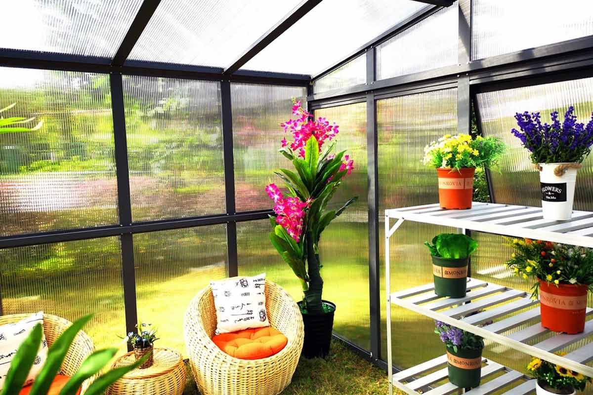 Verlassen Sie sich bei unserem Gewächshaus Oregano auf eine hohe Materialqualität und durchdachte Funktionen die Ihnen das Gärtnern erleichtern werden. Durch die große Flügeltür, können Sie mit größeren Lasten bzw. Gegenständen bequem gehen. Mit den Seitenfenstern, können Sie nach Belieben die Belüftung des Gewächshauses justieren. Um starke Sonneneinstrahlung abzuhalten, besteht das Dach aus 10 mm Hohlkammerplatten. Diese sind auch sehr robust gegen herabfallende Äste. Dank einer speziellen Pultdachkonstruktion bietet es Ihnen eine optimale Raumhöhe. Das ist Qualität die ein Leben lang Freude und Nutzen bereitet