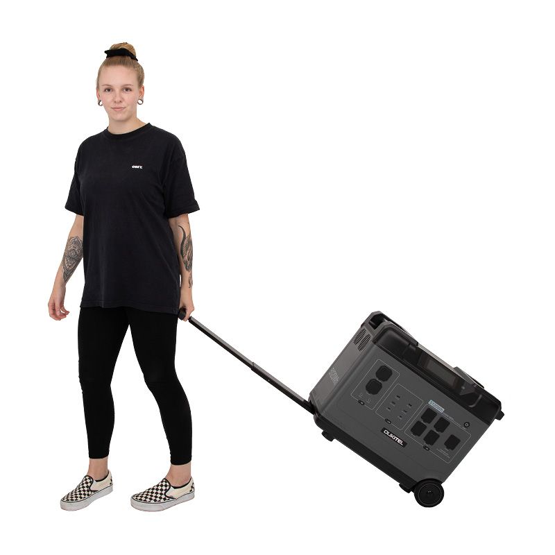 Die ultimative Energiestation sorgt dafür, dass Ihnen stets eine zuverlässige und sichere Stromversorgung auf leise, bequeme und wirklich umweltfreundliche Weise zur Verfügung steht. Ihre Hochleistungsgeräte sind nicht mehr auf eine Wechselstromsteckdose angewiesen. Die praktischen Räder und der ausziehbare Griff ermöglichen das einfache Bewegen des mobilen Akkus.