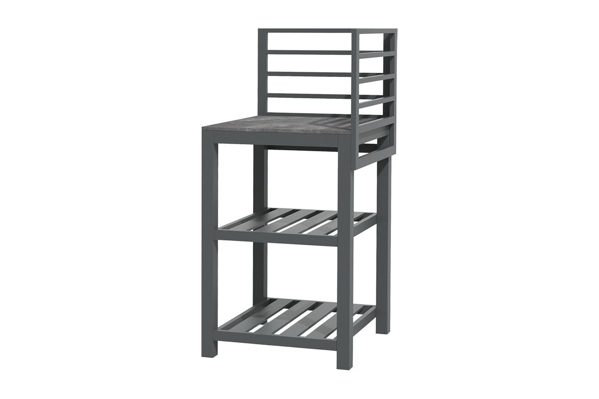 Aluminium-Outdoorküche in Anthrazit – so flexibel wie Ihr Sommer. Diese moderne Outdoorküche aus pulverbeschichtetem Aluminium in Anthrazit lässt sich perfekt an Ihre Wünsche anpassen. Vier verschiedene Elemente können ganz nach Bedarf miteinander kombiniert werden: ein Modul mit Korpus und Doppelflügeltüren zur geschützten Aufbewahrung, ein Modul mit Edelstahlspüle inklusive Armatur, sowie zwei Elemente mit offenen Ablageflächen in zwei unterschiedlichen Breiten. Die durchgehende Arbeitsfläche besteht aus Sinterstein – einem besonders robusten, kratzfesten und pflegeleichten Material, das nahezu keine Feuchtigkeit aufnimmt und sich ideal für den dauerhaften Einsatz im Außenbereich eignet. Die Rückwand besteht aus vier waagerechten Aluminium-Querstäben, an denen sich zusätzlich eine praktische Ablagefläche einhängen lässt – ideal für Gewürze, Gläser oder Grillzubehör. Mit einer Arbeitshöhe von ca. 90-91 cm (je nach Fußeinstellung) bietet die Küche ergonomischen Komfort im Außenbereich. Ob kompakte Lösung mit zwei Modulen oder großzügige Koch- und Grillzone mit mehreren Elementen – die Outdoorküche ist flexibel erweiterbar und passt sich jeder Terrasse und jedem Garten perfekt an. Robust, wetterbeständig und klar im Design wird sie zum Mittelpunkt Ihrer Outdoor-Gastronomie.