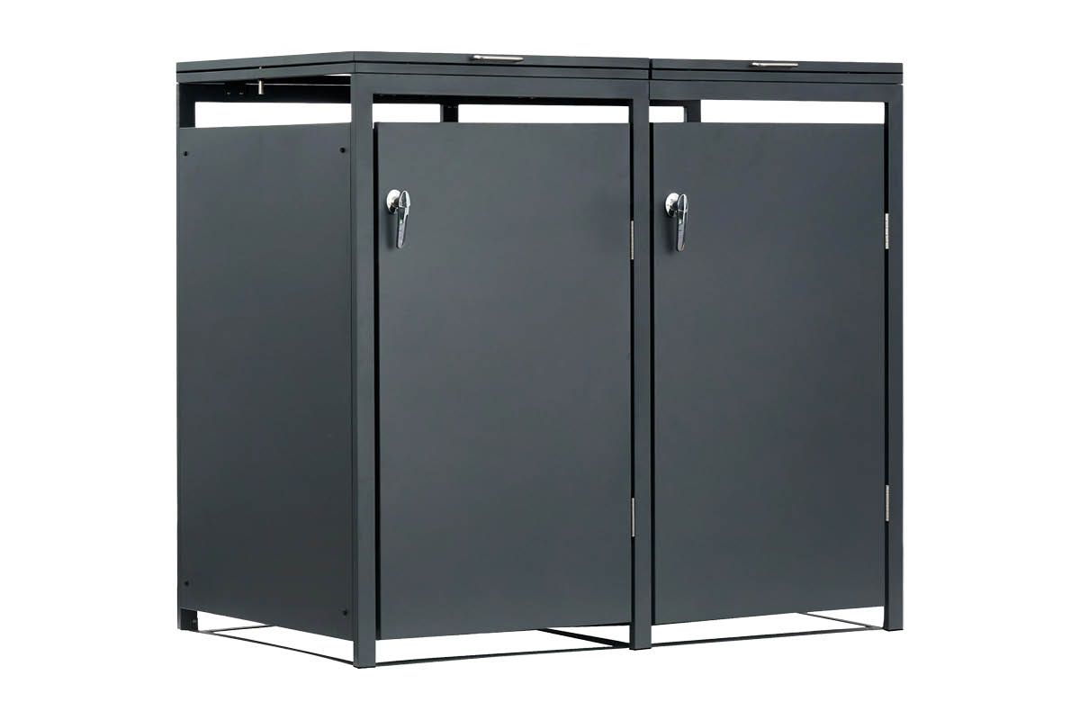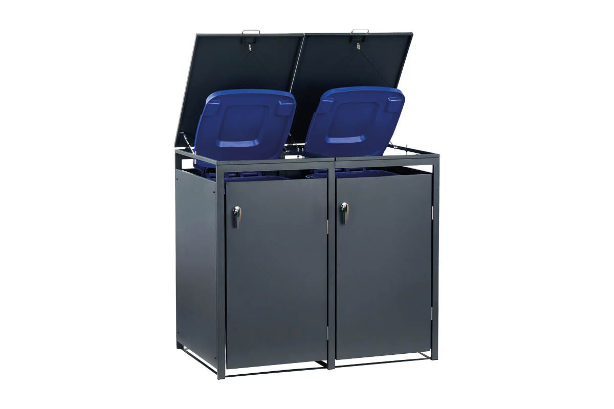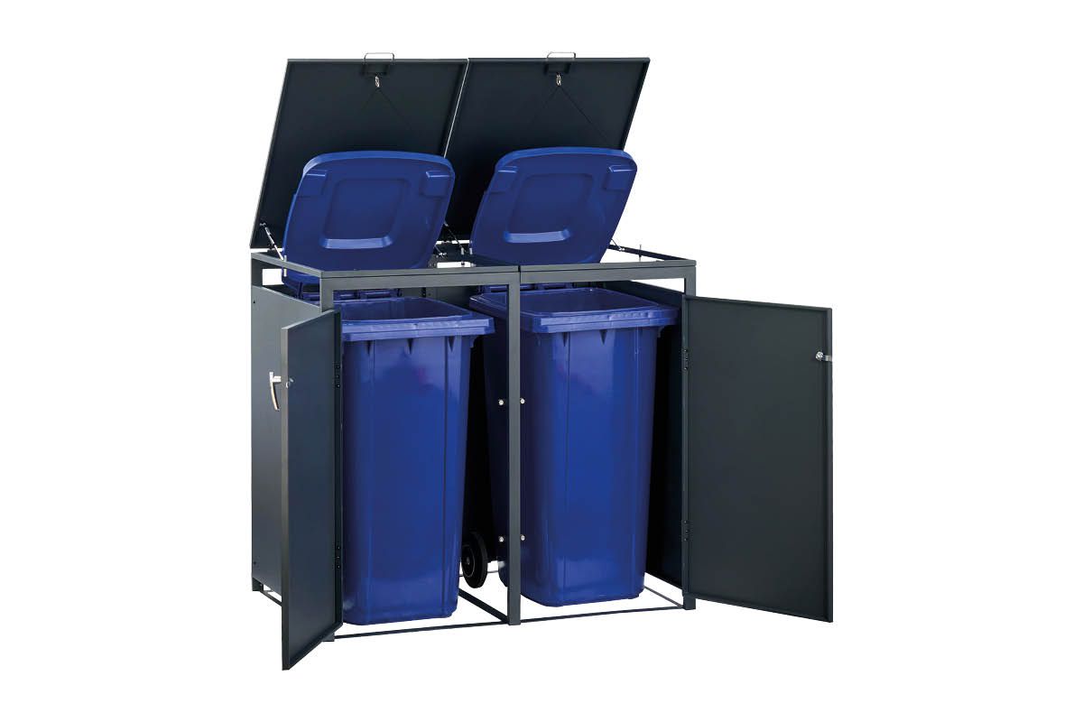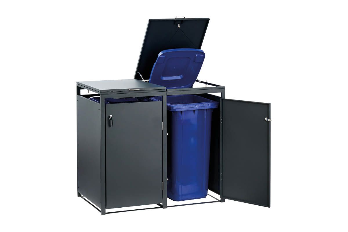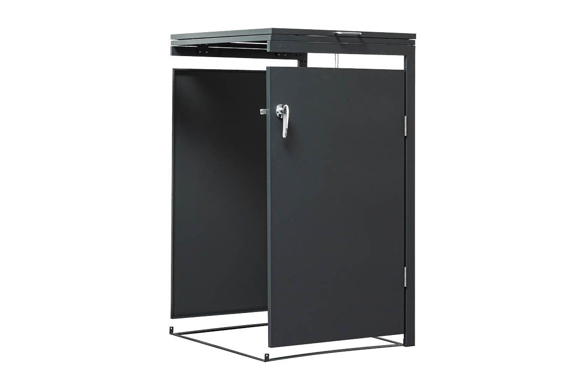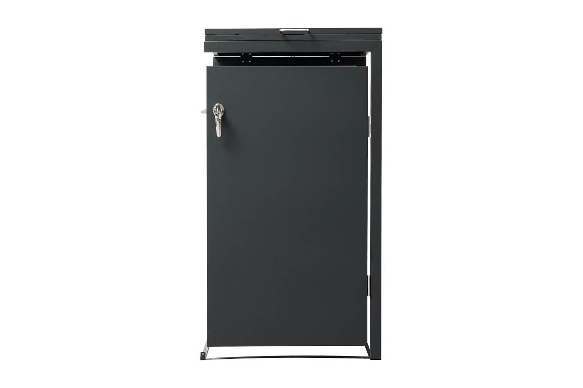 Elegante Mülltonnenbox aus Stahl – praktisch, robust, erweiterbar! Unsere anthrazit-beschichtete Mülltonnenbox aus hochwertigem Stahl bietet Platz für eine 120 oder 240 Liter-Tonne und überzeugt durch modernes Design und Funktionalität. Dank Flügeltür und Deckel mit zwei Gasdruckdämpfern lässt sich die Box bequem öffnen – auf Wunsch sogar gekoppelt mit dem Deckel der Mülltonne für ein müheloses Einwerfen. Durch das clevere Erweiterungssystem lässt sich die Box beliebig um weitere Einheiten ergänzen – ideal für jede Haushaltsgröße!