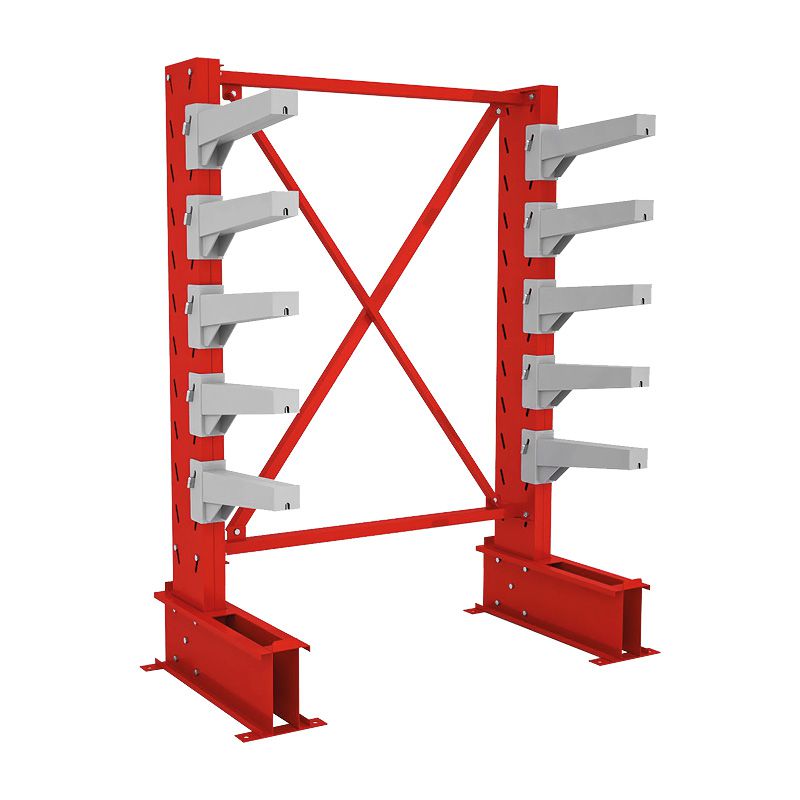 Robuste Konstruktion – Ausgestattet mit einer stabilen Schweißkonstruktion und massiven Fußplatten (inkl. Bohrungen für die Bodenbefestigung) sind unsere Kragarmregale auf dauerhafte Stabilität ausgelegt.