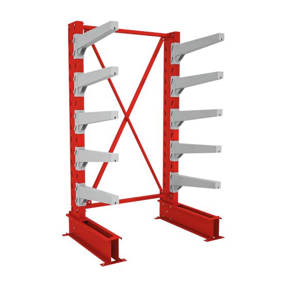 Robuste Konstruktion – Ausgestattet mit einer stabilen Schweißkonstruktion und massiven Fußplatten (inkl. Bohrungen für die Bodenbefestigung) sind unsere Kragarmregale auf dauerhafte Stabilität ausgelegt.