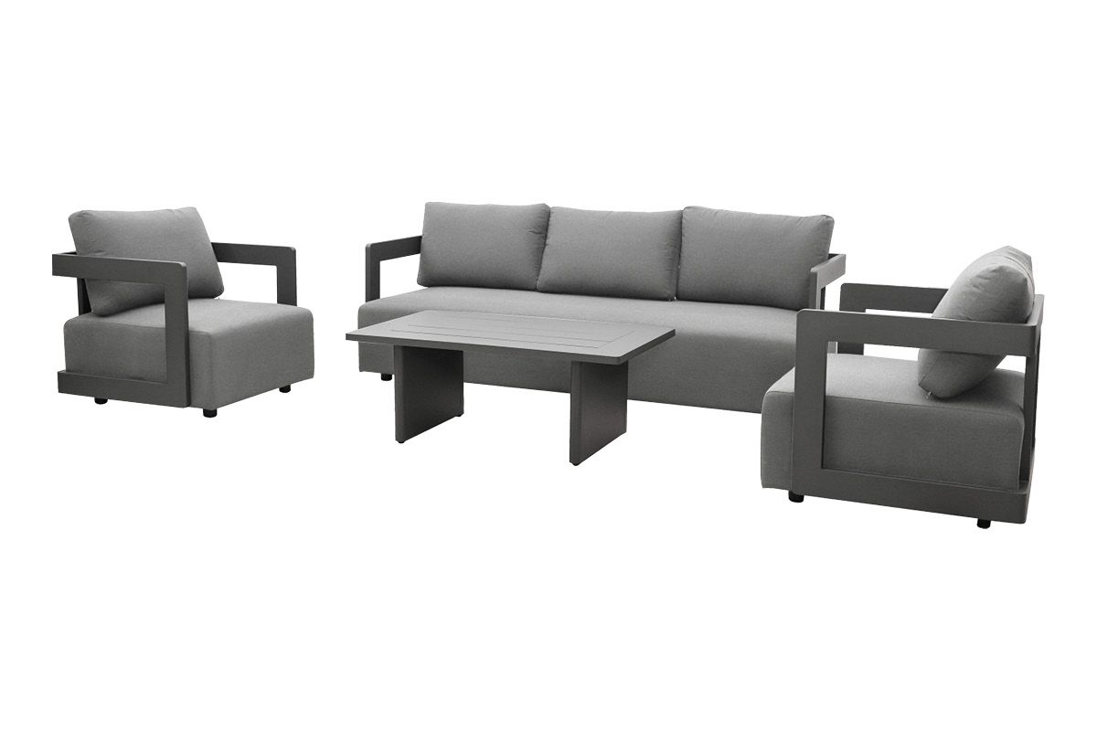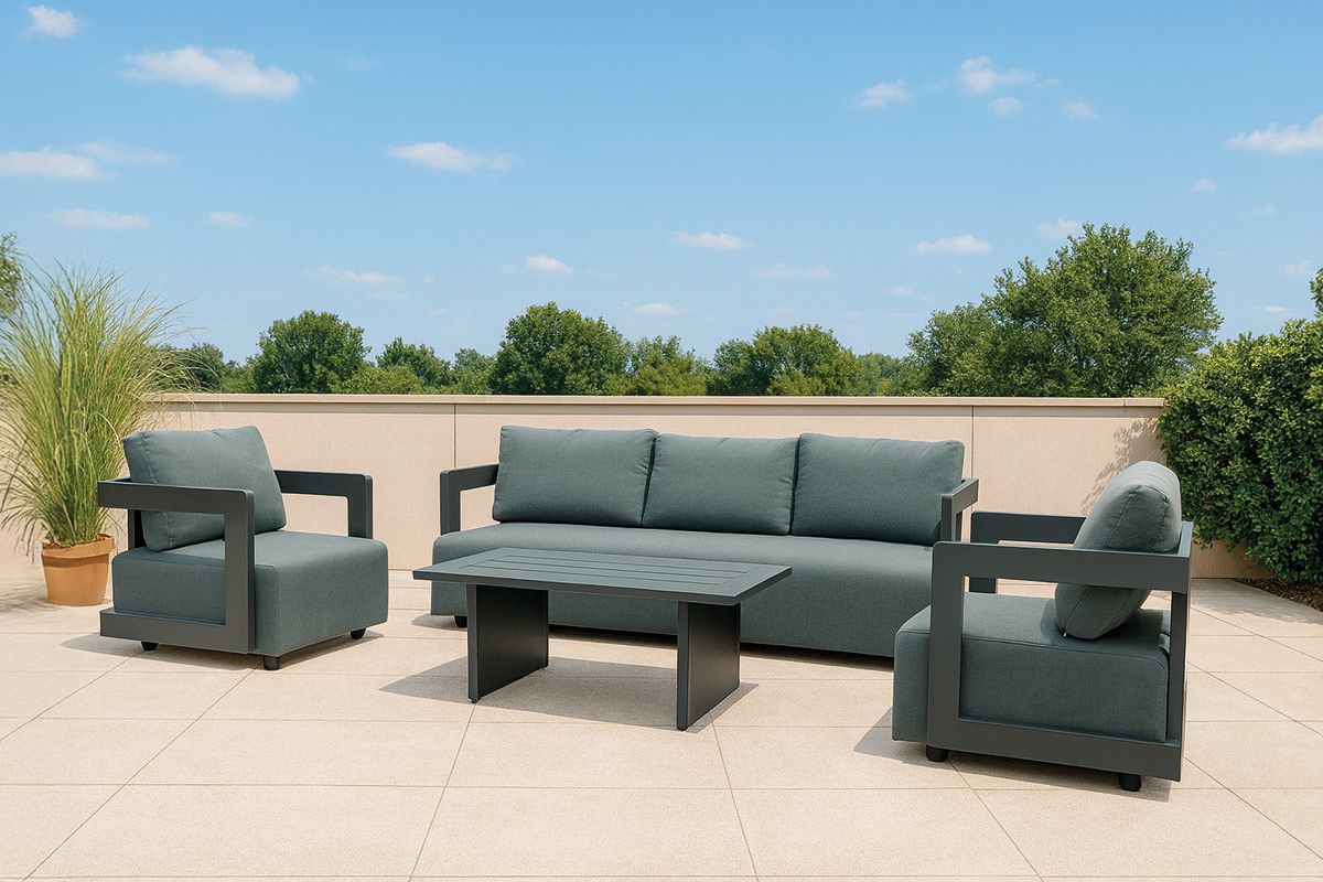 Gartenlounge Porto – urbaner Lounge-Komfort für draußen. DerLoungesessel Porto und das großzügige 3-Sitzer-Loungesofa verbinden ein klares Gestell aus Aluminium in Anthrazit mit edlen, dunkelgrauen, Polstern. Die geradlinige Formensprache passt perfekt zu modernen Terrassen und schafft eine entspannte, hochwertige Lounge-Atmosphäre – ideal zum Zurücklehnen, Lesen oder für gemütliche Abende mit Freunden. Dazu harmoniert der Gartentisch Rio aus Aluminium in Anthrazit als stilvolle Ablage für Drinks, Snacks oder Deko. Für unbeschwerten Outdoor-Genuss sorgen passgenaue, wasserdichte Cover für Sessel und Sofa. Sie schützen zuverlässig vor Regen und Schmutz, damit Ihre Porto-Lounge lange schön bleibt und jederzeit einsatzbereit ist.