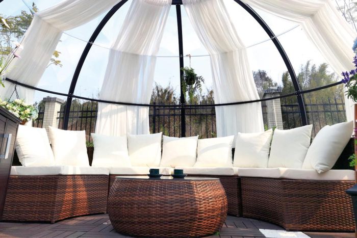 Hauptkörper: aus PE-Rattan (ø 9 m, 1,2 mm stark) – stilvoll &pflegeleicht