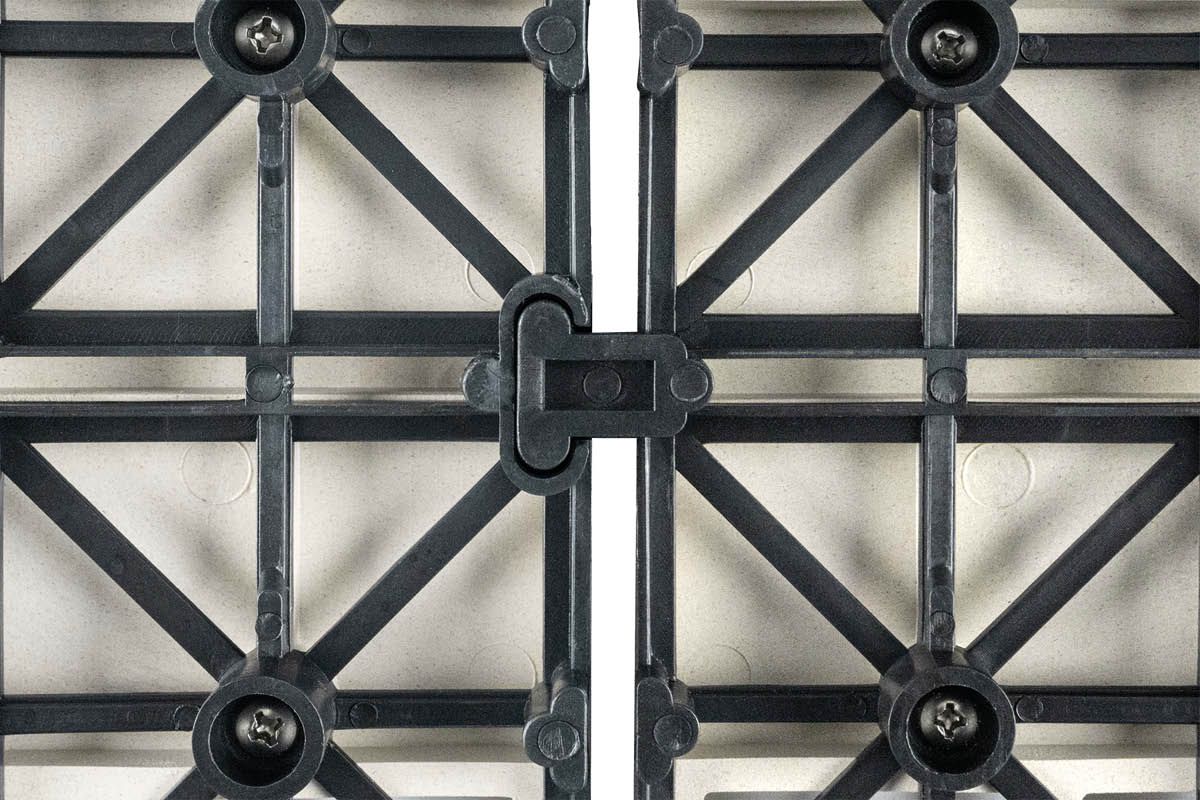 • Mit dem beliebten Klicksystem ist das Verlegen der Fliesen einfach und es werden weder Werkzeug noch Schrauben benötigt.