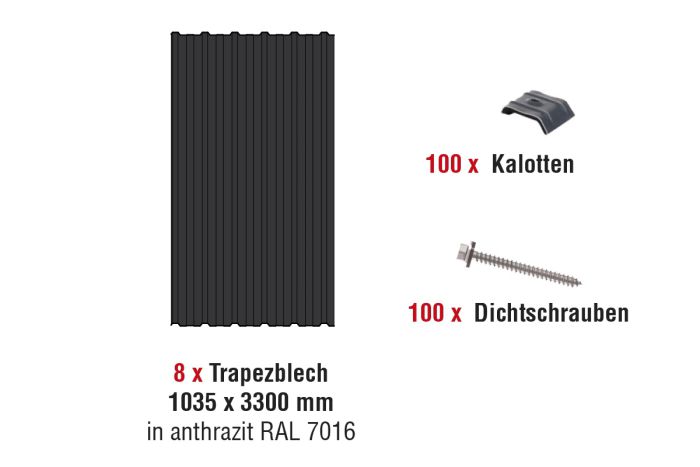 • 8 x Trapezblech 1035 x 3300 mm in anthrazit RAL 7016