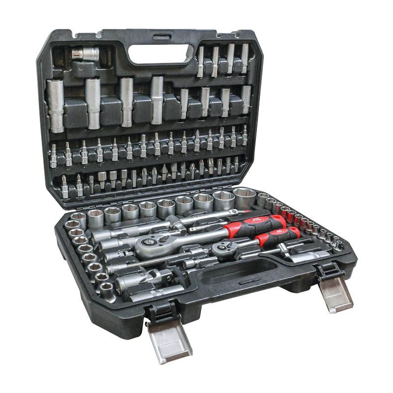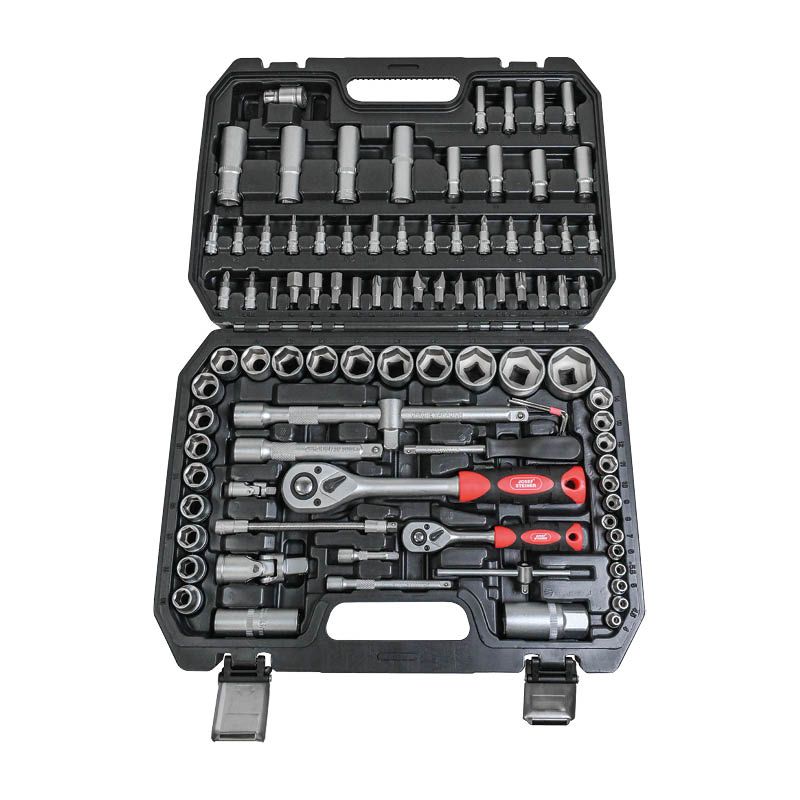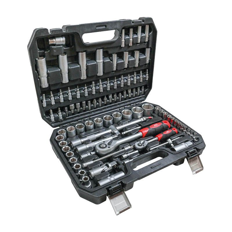 Ratschenkoffer 94-teilig – alles, was Sie brauchen, kompakt in einem Set! Dieser hochwertige Werkzeugkoffer bietet eine umfangreiche Auswahl an Stecknüssen, Verlängerungen, Bits und Zubehör für alle gängigen Arbeiten rund ums Haus, in der Werkstatt oder am Auto. Dank der praktischen Sortierung im robusten Kunststoffkoffer haben Sie Ihr Werkzeug stets griffbereit und sicher verstaut.
